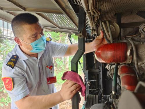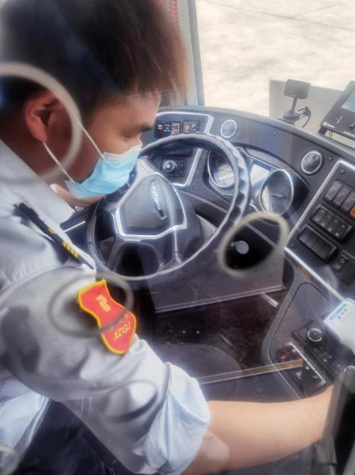 新區(qū)公司1780車駕駛員白延奇駕駛的19路線,由銅山新區(qū)總站發(fā)往徐州火車站,全程接近30.5公里,途徑居民區(qū)、學(xué)校眾多,每天要跑3趟,6個(gè)單程,不堵車的時(shí)候一個(gè)單程需要一個(gè)小時(shí)。“由于工作的特殊性,即便天氣再熱我們也不敢多喝水,早晚高峰堵車至少得1個(gè)多小時(shí)才能回到主站,只有到終點(diǎn)站才能多喝幾口水,抓緊時(shí)間上個(gè)廁所。”駕駛員白延奇樣說(shuō)道。為了給市民乘客提供溫馨、舒適的車廂環(huán)境,每天朝陽(yáng)還未升起,白延奇就到達(dá)停車場(chǎng),檢查車輛狀況、擦拭發(fā)動(dòng)機(jī)、刷洗輪胎、打掃車輛衛(wèi)生,在確?!拔鍍粢涣痢钡耐瑫r(shí),對(duì)車廂進(jìn)行全面消毒,不一會(huì),白延奇的額頭就布滿了汗珠,身上的行業(yè)服早已濕透,緊緊地貼在皮膚上。