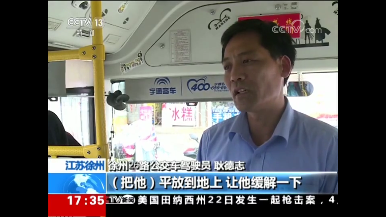 4月20日下午4點58分,26路自編號5025車從徐州開往賈汪途中,一名坐在車中間座位上的男乘客突然倒在了旁邊乘客身上,口吐白沫,渾身抽搐打著哆嗦,情況十分危急。乘務員昝昱安和周圍乘客立即上前查看,駕駛員耿德志也急忙停下車趕來。