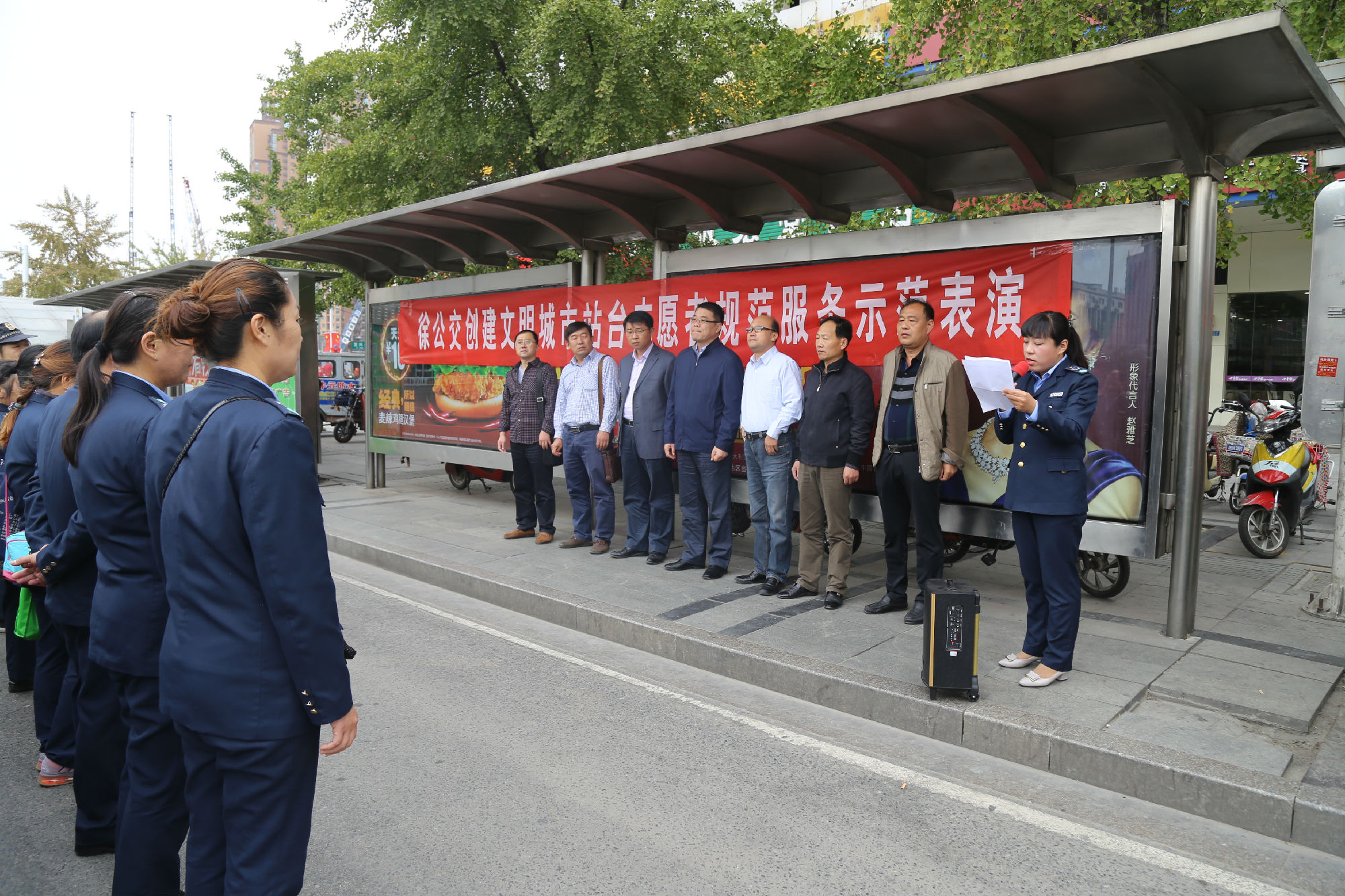 為進(jìn)一步規(guī)范站臺(tái)服務(wù)引導(dǎo)工作,不斷推動(dòng)文明城市創(chuàng)建順利進(jìn)行,10月9日上午,公司在徐州站主廣場(chǎng)舉行了一次公交站臺(tái)秩序規(guī)范服務(wù)示范表演。團(tuán)市委副書(shū)記夏友峰、運(yùn)管處客運(yùn)科科長(zhǎng)陳福升、以及市創(chuàng)建辦交通秩序二組三位領(lǐng)導(dǎo)蒞臨觀摩。服務(wù)督導(dǎo)隊(duì)34名站臺(tái)志愿者參加了示范表演。