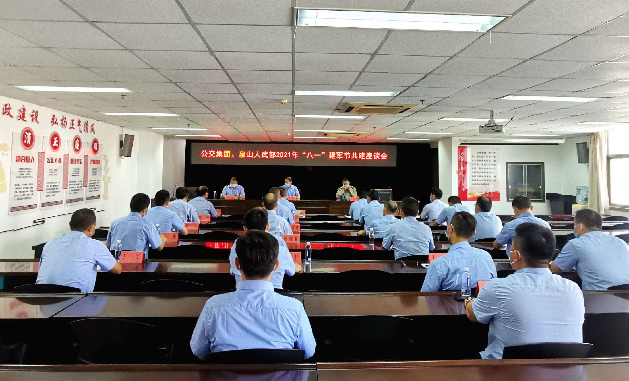 為慶祝中國(guó)人民解放軍建軍94周年,繼承和發(fā)揚(yáng)擁軍優(yōu)屬的光榮傳統(tǒng),7月30日上午,徐州公交集團(tuán)召開退役軍人座談會(huì),集團(tuán)黨委書記、董事長(zhǎng)高守江,泉山人武部部長(zhǎng)劉海濤及20余名公交退役軍人參加會(huì)議。集團(tuán)黨委委員、副總經(jīng)理丁玉華主持會(huì)議。