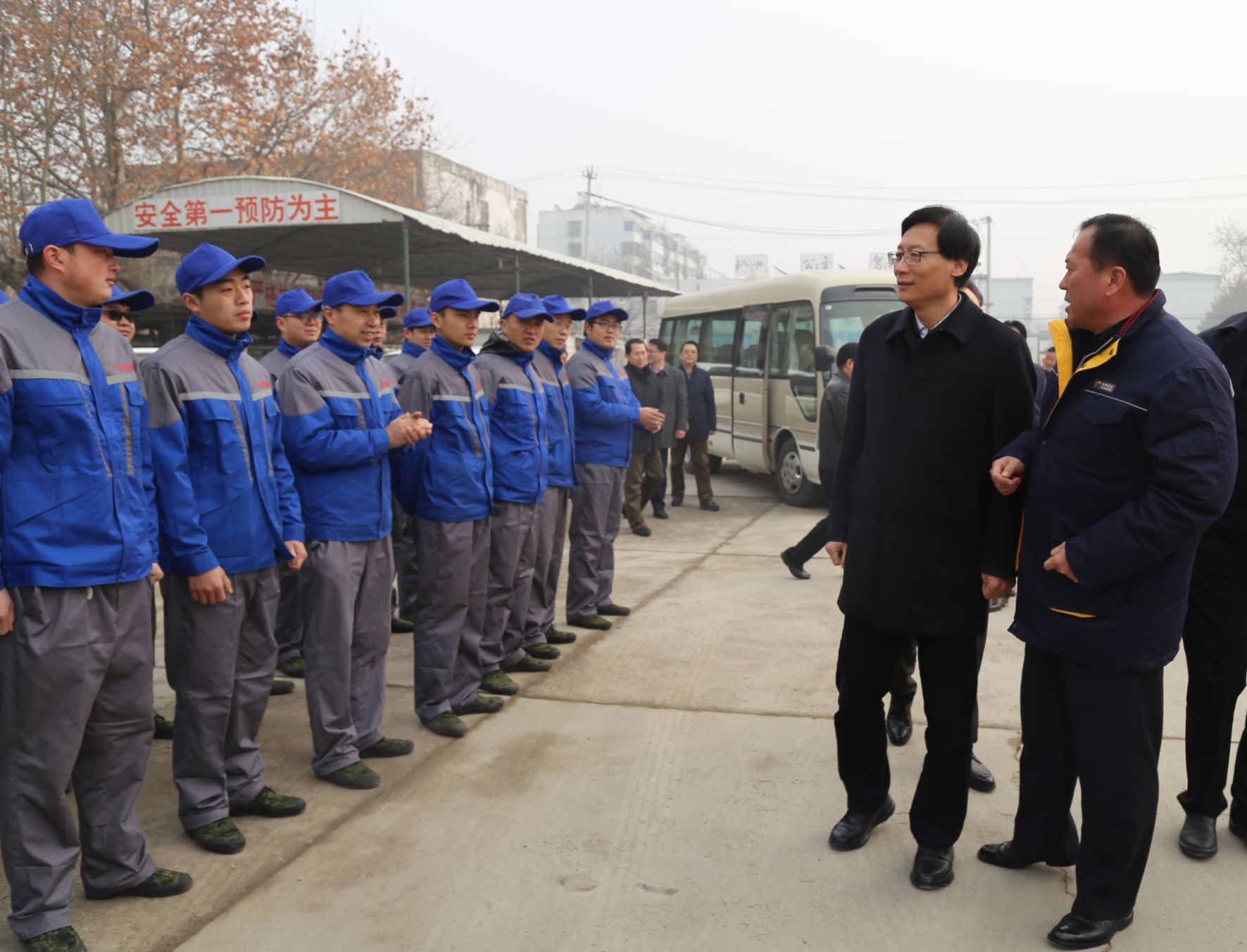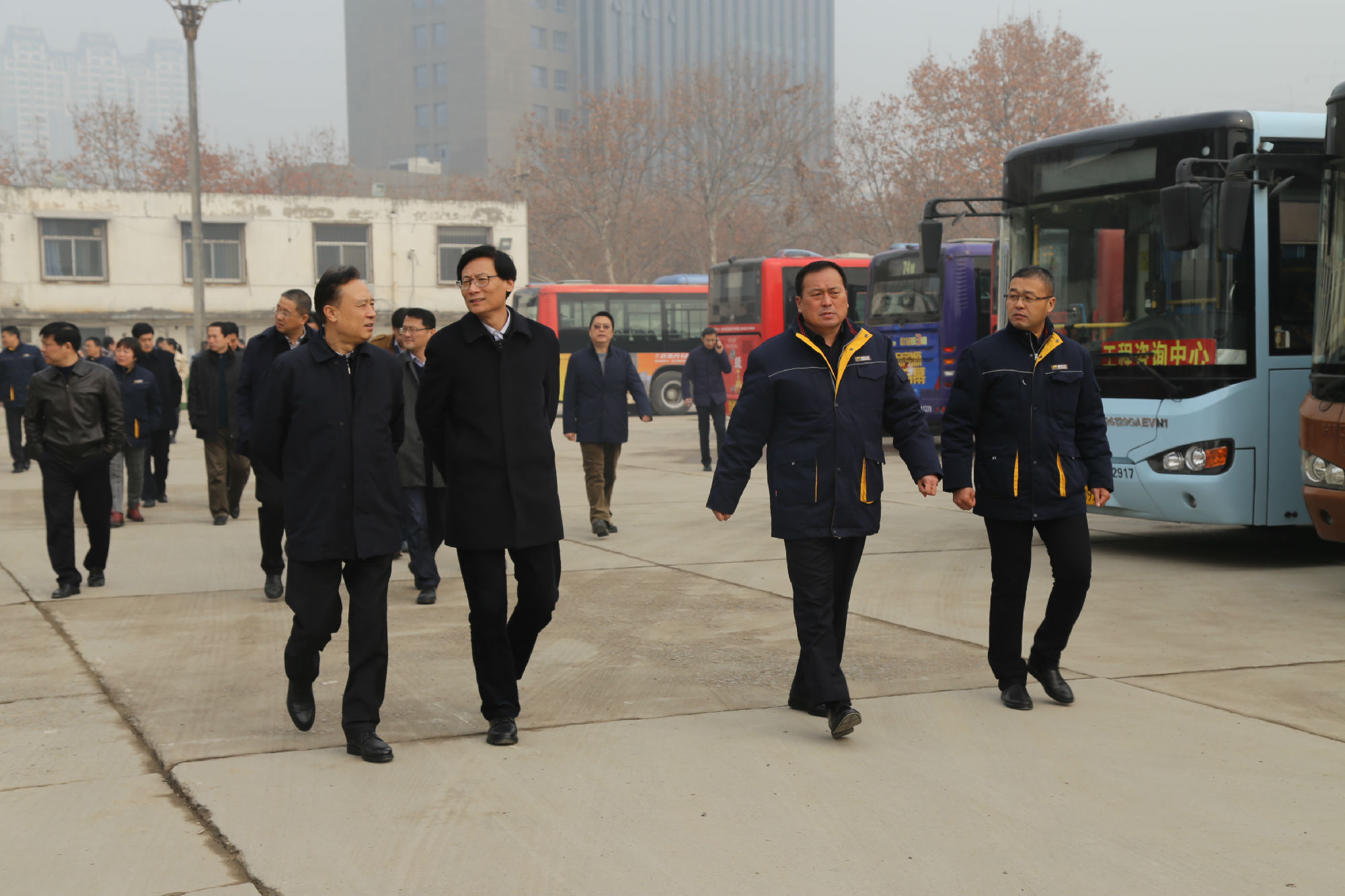 1月18日上午,徐州市副市長趙立群、副秘書長陳剛等領(lǐng)導(dǎo),在市交通運(yùn)輸局局長蔡前鋒、副局長李開春,公司董事長、總經(jīng)理杜紅軍等的陪同下,來到公交保養(yǎng)廠調(diào)研視察。