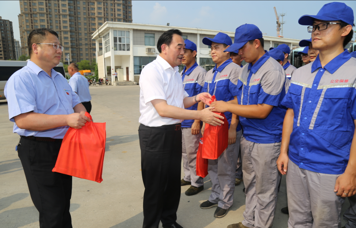 今夏持續(xù)高溫,酷熱難當(dāng),8月9日下午,徐州市委書(shū)記、市人大常委會(huì)主任周鐵根,市委常委、秘書(shū)長(zhǎng)吳新福,市委常委、組織部長(zhǎng)季培東,市人大常委副主任、市總工會(huì)主席束志明等一行,頂著炎炎烈日,冒著36攝氏度的高溫,來(lái)到公交公司郭莊車(chē)場(chǎng)看望慰問(wèn)在高溫下依然堅(jiān)守崗位的公交員工,給大家送來(lái)清涼、帶來(lái)關(guān)心,并代表市委、市人大、市政府,向在酷暑天中依然奮戰(zhàn)一線、堅(jiān)守崗位,戰(zhàn)高溫斗酷暑的公交員工表示衷心感謝,感謝大家的辛勤勞動(dòng)和無(wú)私奉獻(xiàn)、吃苦耐勞的精神。云龍區(qū)區(qū)委、市交通運(yùn)輸局黨委書(shū)記、局長(zhǎng)蔡前鋒,公交公司董事長(zhǎng)、總經(jīng)理杜紅軍參加了慰問(wèn)活動(dòng)。